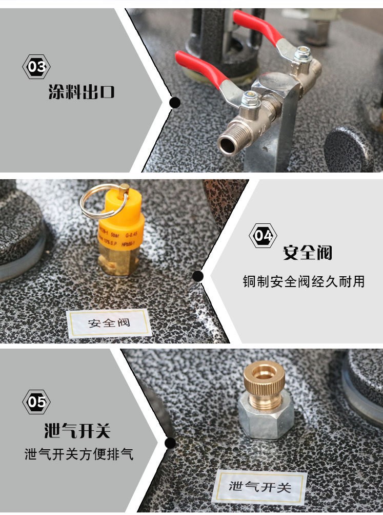 三豐壓力桶具有防腐蝕耐高壓特性。適用于油性涂料、脫模劑、膠水等其它常規液體輸送。