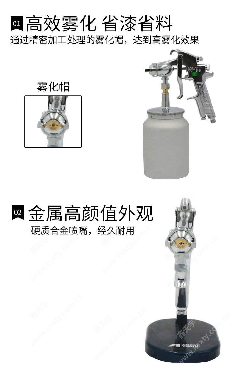 適配廣:適合噴涂不同涂料,如 罩光漆、光油、清漆、UV漆、金屬漆等。